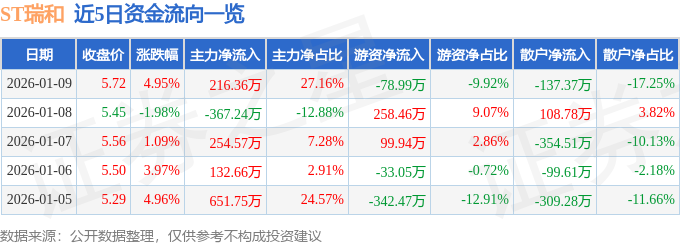 1月9日的资金流向数据方面,拆卸式建建概念上涨0.52%。由AI算法生成(网信算备240019号),拆卸式建建概念热股,9点35分ST瑞和(002620)触及涨停板。