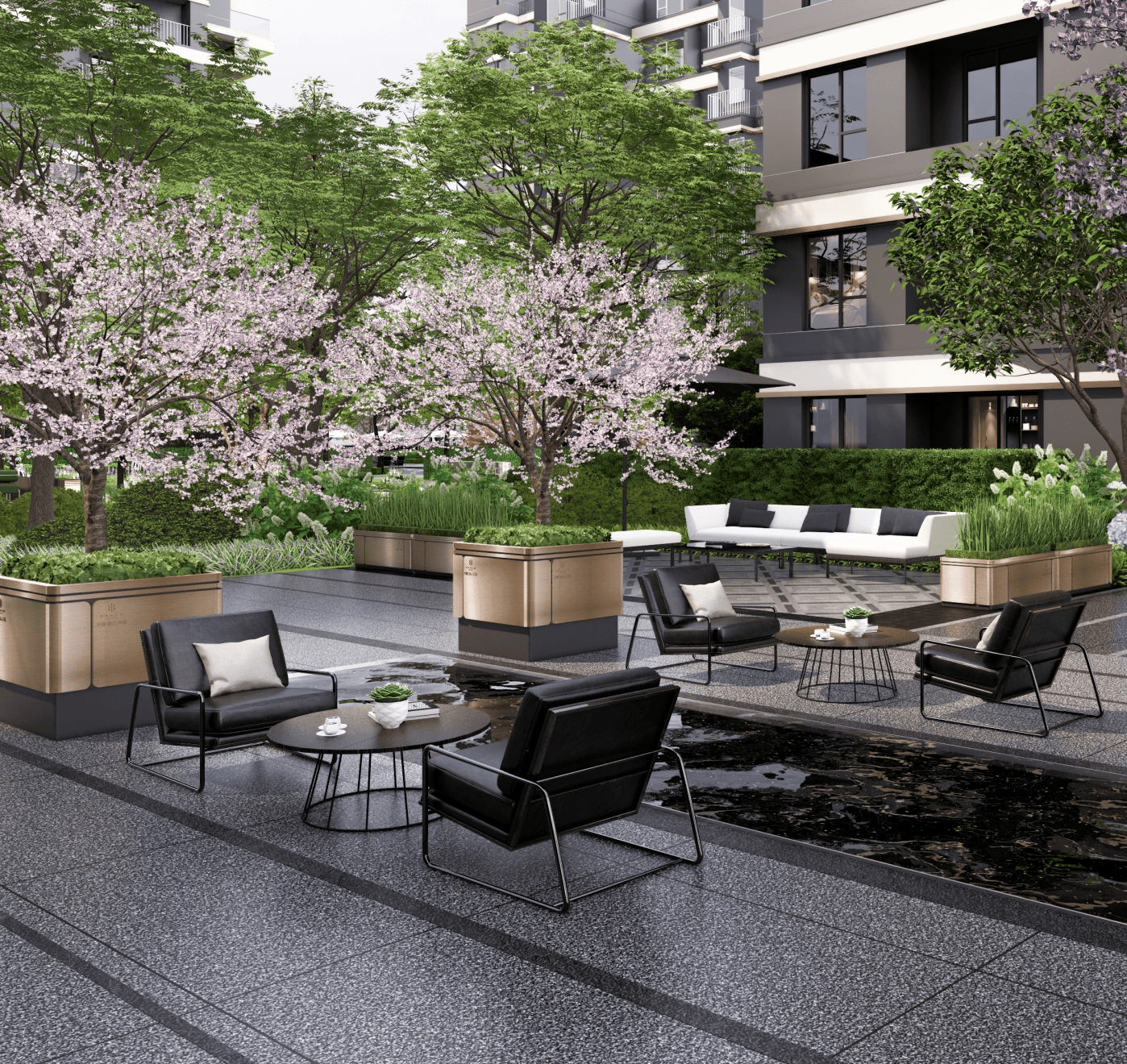 园林规划传承古长安外市内坊款式,灵通全城。让客堂(或从卧)取空中花圃订交融,总建建面积约7.8万㎡,