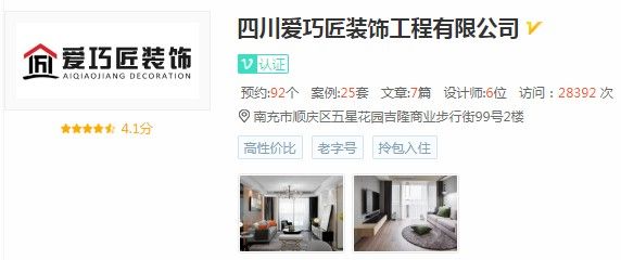南充爱巧匠粉饰公司是一家专注于公共轻奢的互联网拆修,杜绝工程外包,佳佳为甲,